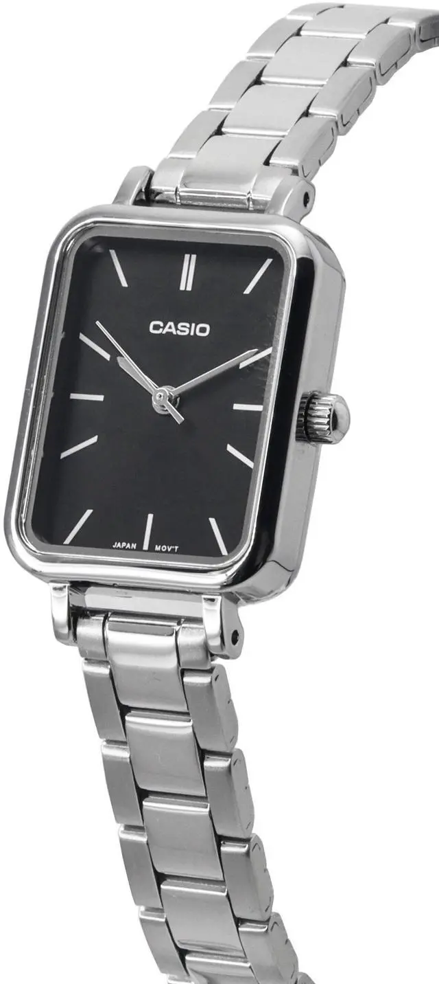 The Casio LTP-V009D-1E stands out with its sleek black dial that exudes sophistication. Encased in polished stainless steel, it combines durability with elegance, making it perfect for any occasion. The watchâs clean, minimalist design is complemented by an easy-to-read layout, featuring precise hour markers. Powered by dependable quartz movement, it offers unparalleled accuracy, ensuring you stay stylishly on time.