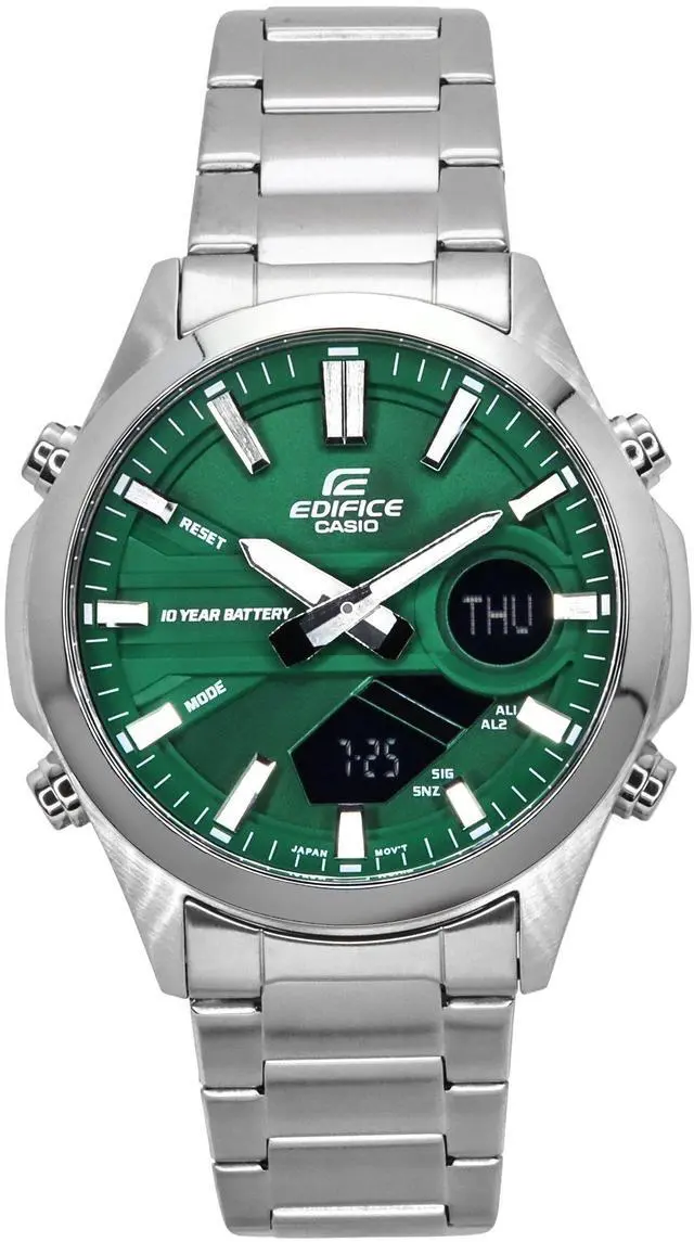 Casio Edifice Analog Digital Stainless Steel Green Dial Quartz EFV-C120D-3A EFVC120D-3 100M Men's Watch