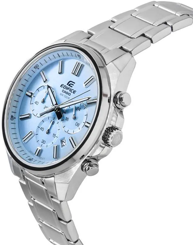 Casio Edifice Analog Standard Chronograph Light Blue Dial Quartz EFV-650D-2BV EFV650D-2B 100M Men's Watch