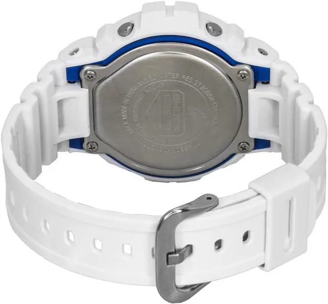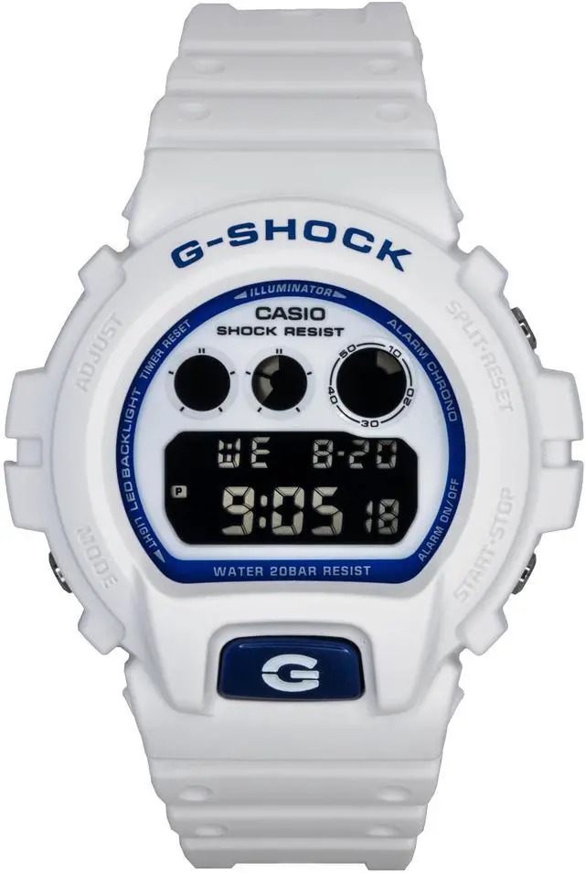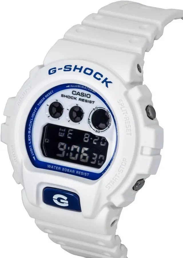 The Casio G-Shock DW-6900HDS-7A1 offers durability and style with its 200-meter water resistance, making it ideal for adventurers. Its bold digital display is complemented by a durable resin strap, providing both comfort and strength for everyday use. Powered by quartz movement, this watch delivers precision and reliability, while the sleek white dial adds a modern touch. A perfect choice for those looking for a robust yet stylish watch that can withstand the elements while offering practical features.