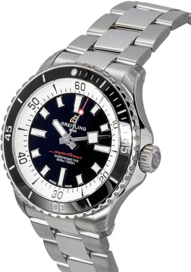 The Breitling Superocean A17375211B1A1 is built for adventure with its robust stainless steel case and striking black dial. This automatic diver's watch boasts a 300-meter water resistance, perfect for underwater exploration. Equipped with a precise automatic movement, it offers both reliability and style. The bold design and luminous markers enhance legibility in all conditions. Whether you're diving deep or navigating daily life, this versatile timepiece is a must-have for those seeking a luxury automatic watch that combines functionality and performance effortlessly. A true companion for any enthusiast.