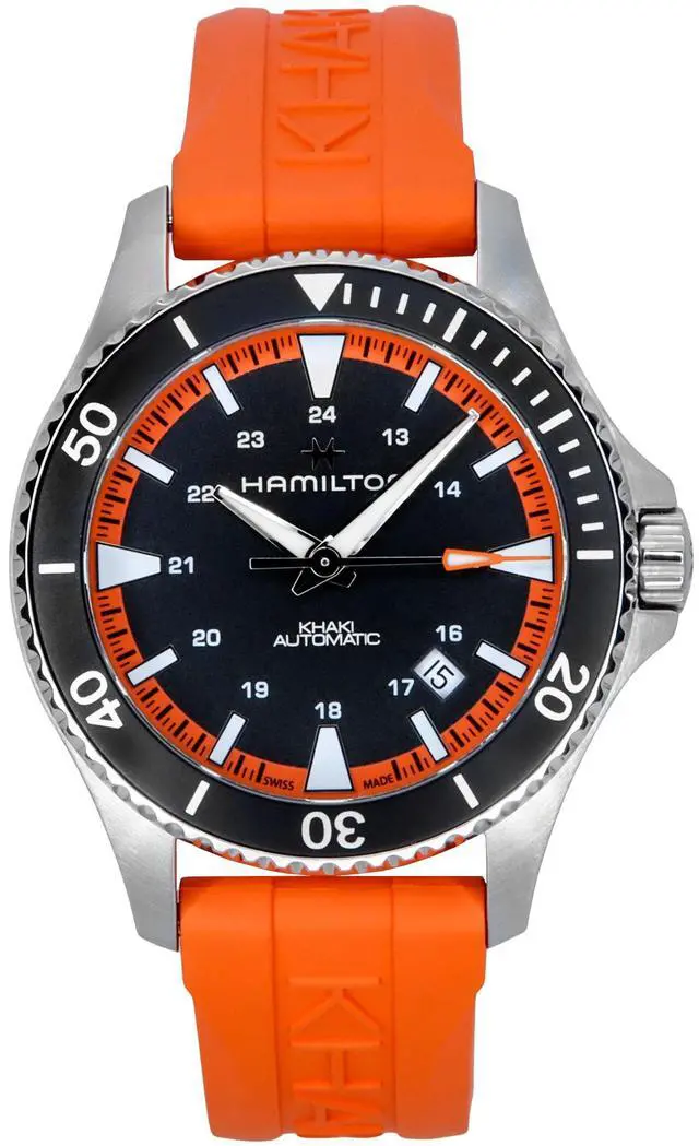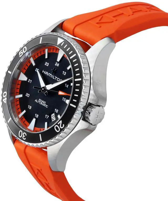 Hamilton Khaki Navy Scuba Orange Rubber Strap Black Dial Automatic H82395331 100M Men's Watch