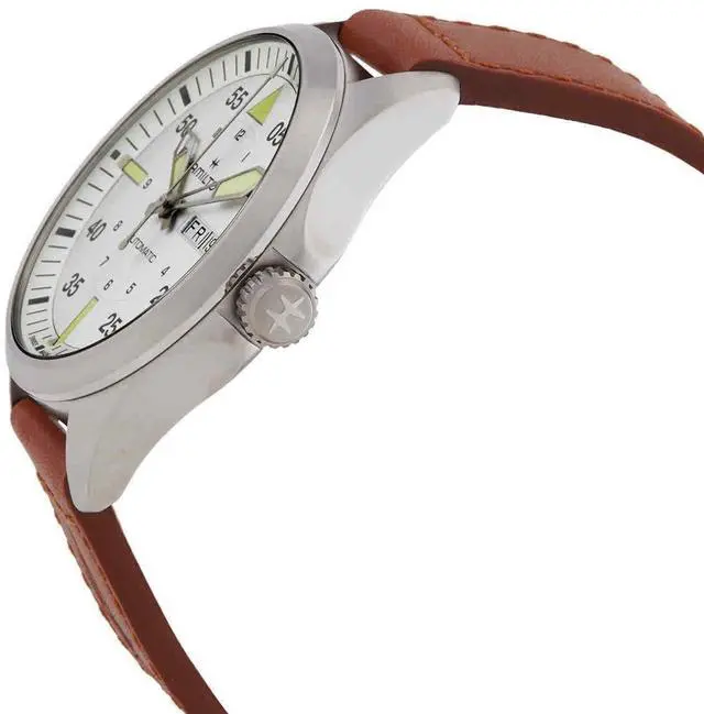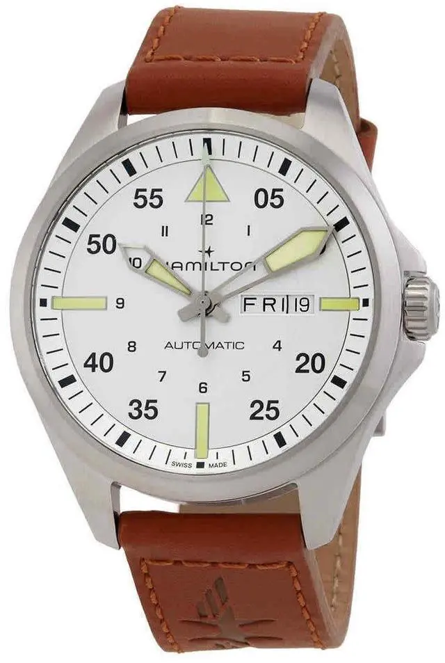 Hamilton Khaki Aviation Pilot Leather Strap Silver Dial Automatic H64635550 100M Men's Watch