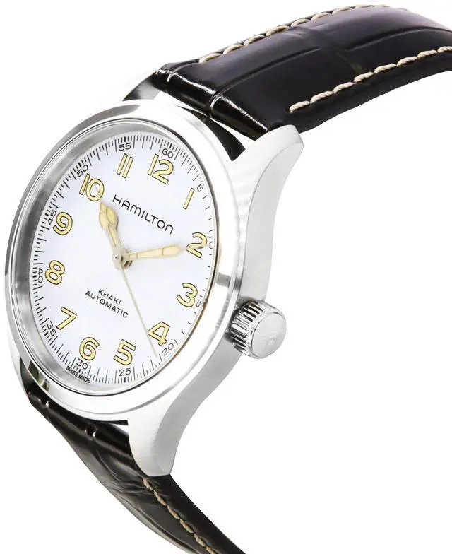 Hamilton Khaki Field Murph Leather Strap White Dial Automatic H70405710 100M Men's Watch