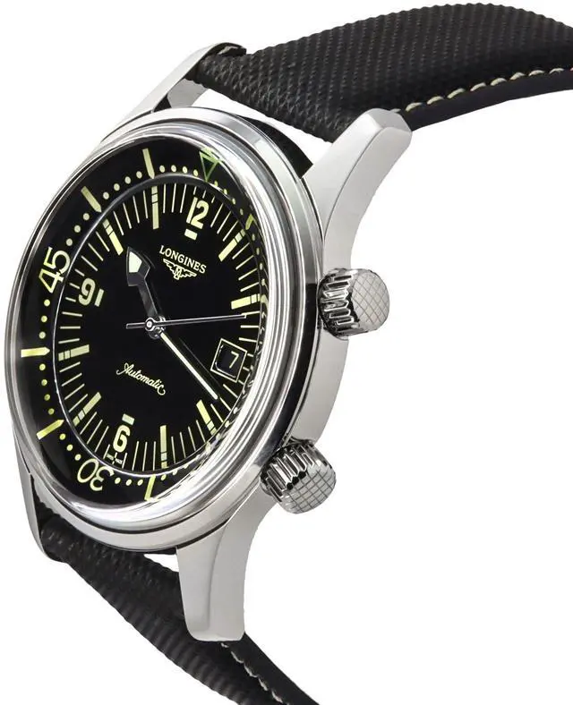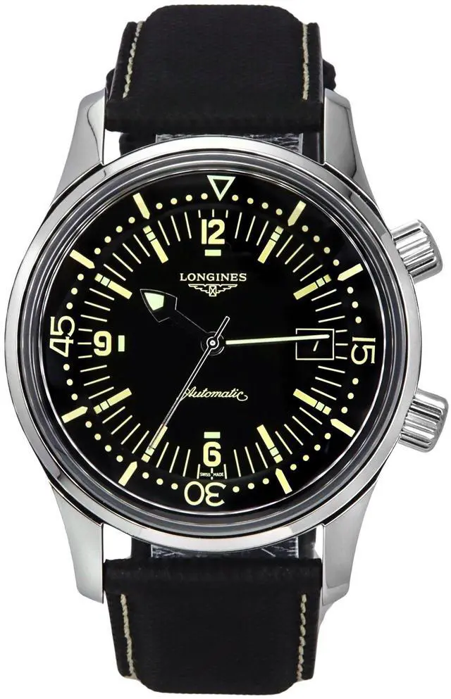 Longines Legend Diver Leather Strap Black Dial Automatic L3.774.4.50.0 300M Men's Watch