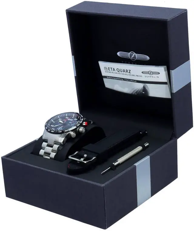 Zeppelin Eurofighter Typhoon Chronograph Blue Dial Quartz 7298M3SET 100M Men's Watch With Band Sets