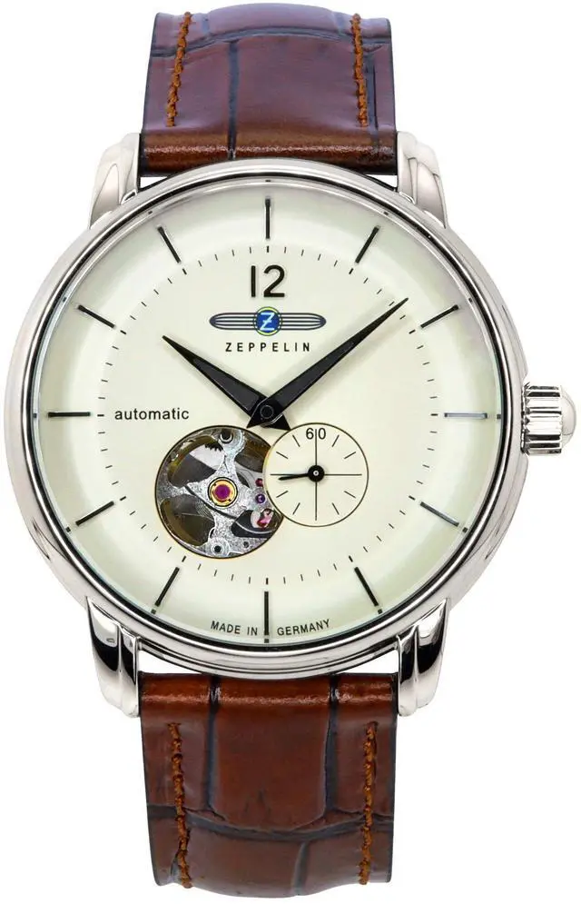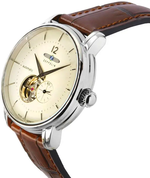 Zeppelin LZ-120 Bodensee Leather Strap Beige Open Heart Dial Automatic 81661 Men's Watch