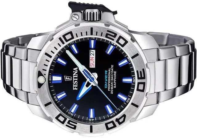 Festina Classics Stainless Steel Black Dial Quartz Diver's F20665-3 200M Men's Watch With Gift Strap