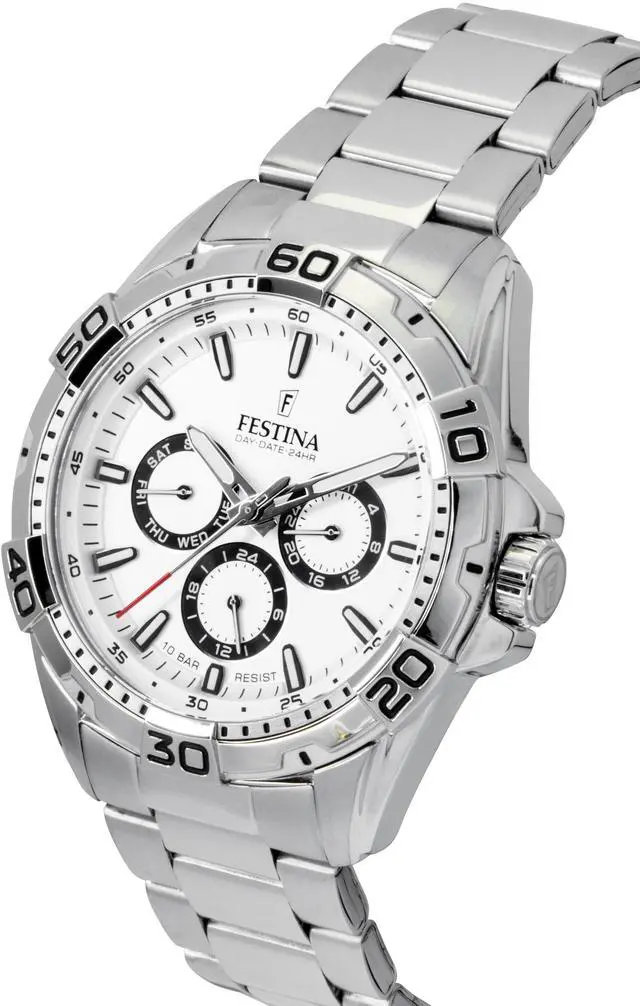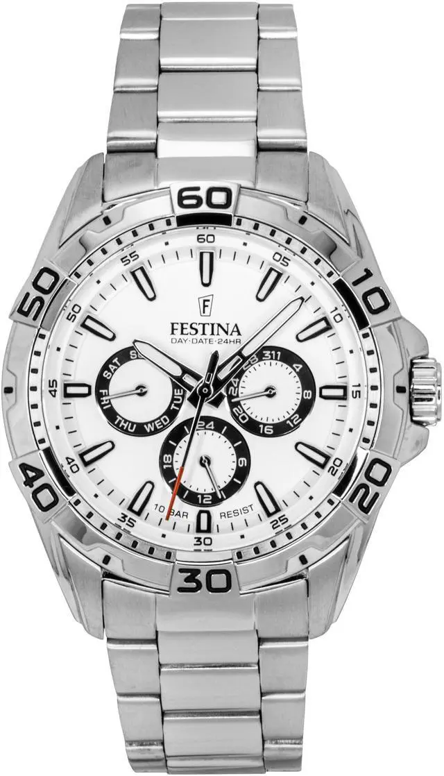 Festina Stainless Steel Multifunction White Dial Quartz F20623-1 100M Men's Watch