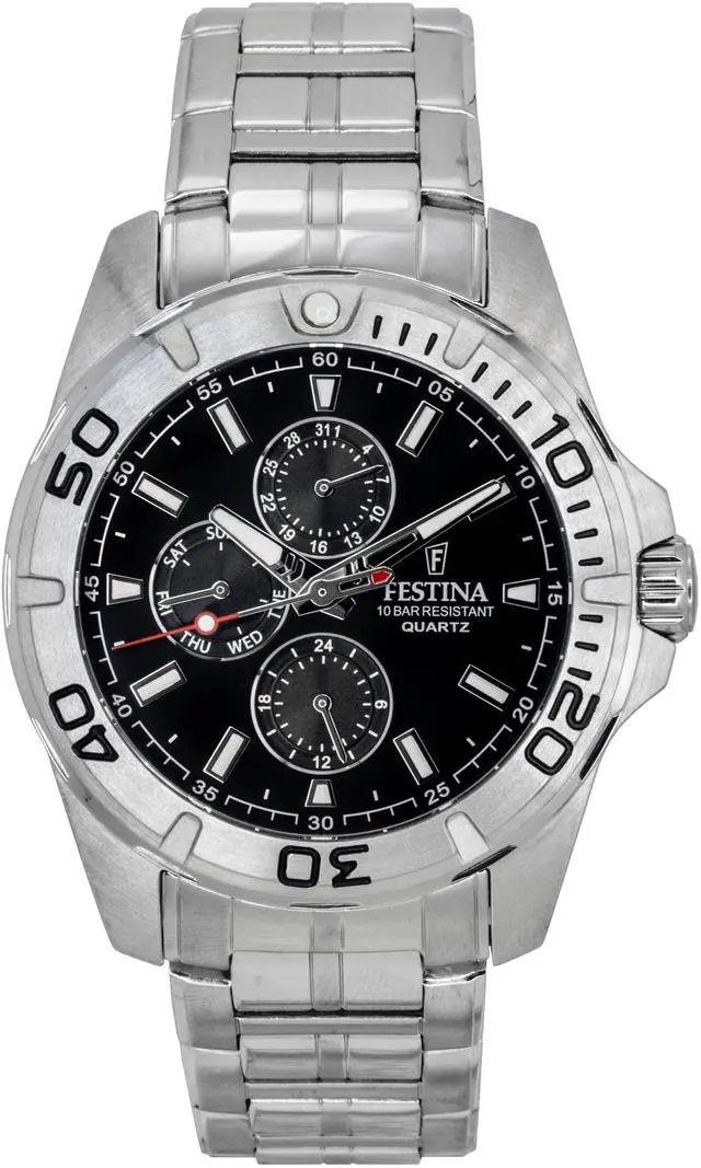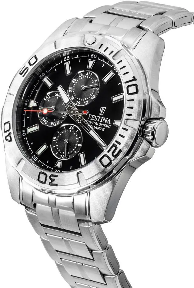 Festina Multifunction Stainless Steel Black Dial Quartz F20445-3 100M Men's Watch