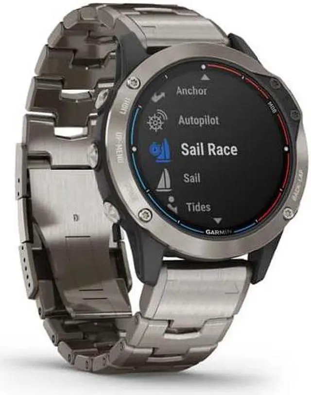 Titanium band: GARMIN quatix® 6 Titanium is made for all your hobbies such as boating, fishing, workouts, running, golfing, cycling, swimming, and others. In a single charge, the watch lasts up to 2 weeks in smartwatch mode. The watch offers comprehensive connectivity with compatible Garmin chartplotters, GNT™ 10 transceiver, and other devices. After connection with those compatible devices, you can stream data to your watch for better and informed decisions. Access the autopilot app and take full control over your boat with the watch. You can change heading, follow a GPS route, and engage in pattern steering with the watch. Water depth, engine RPM, custom data, wind speed, and other data can be streamed through your wrist if your watch is connected with the boat’s compatible devices. GARMIN quatix® 6 Titanium is compatible with the built-in Fusion-Link™ Lite app that helps you in controlling the onboard entertainment system from your quatix 6 watch. Do not want to keep your smartphone close to your body while doing any activity? Link it with the watch and it will give you smart notifications for emails, texts, and alerts.