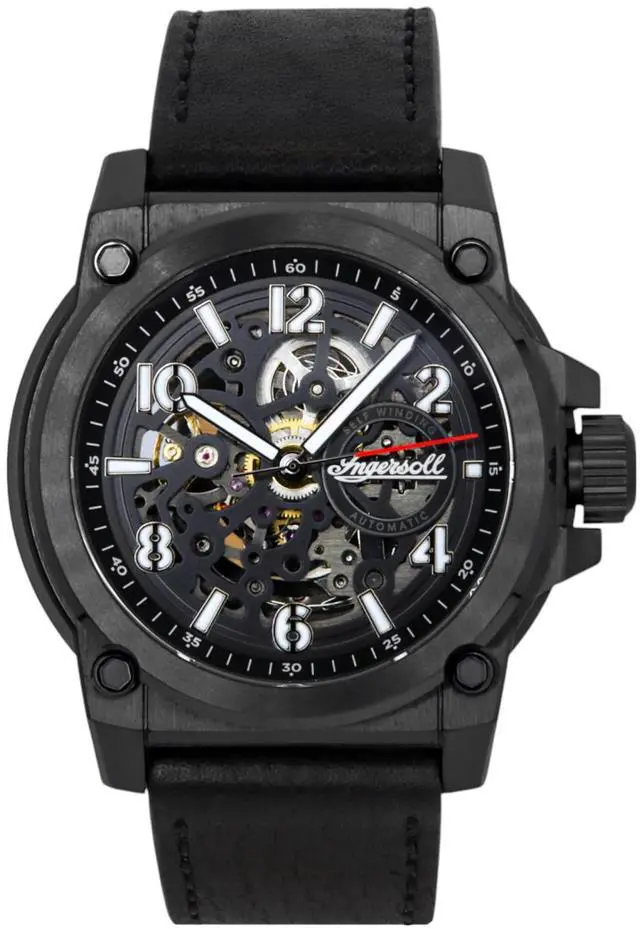 Ingersoll The Anvil Leather Strap Black Skeleton Dial Automatic I16602 Men's Watch