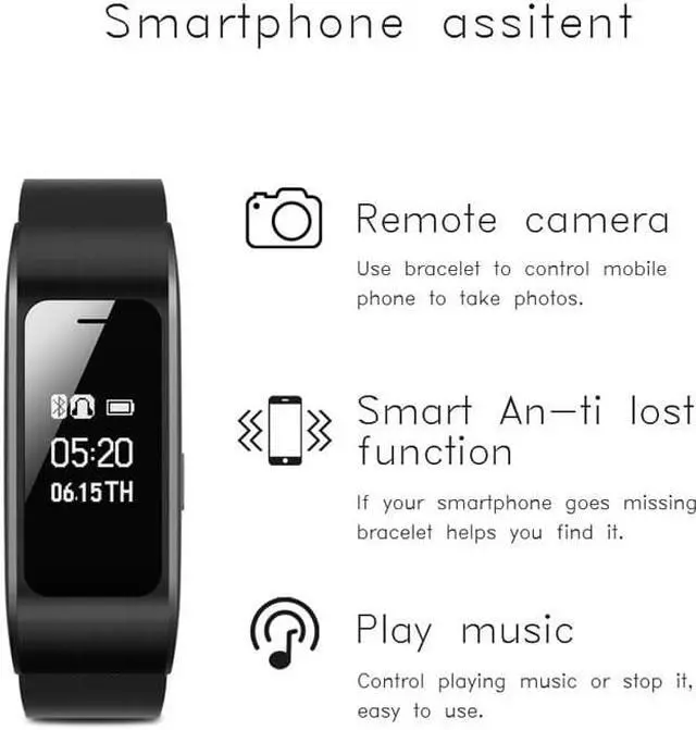 After connect App successfully.The smart bracelet will control music,take picture and push message such as wechat,facebook,Twitter and so on.