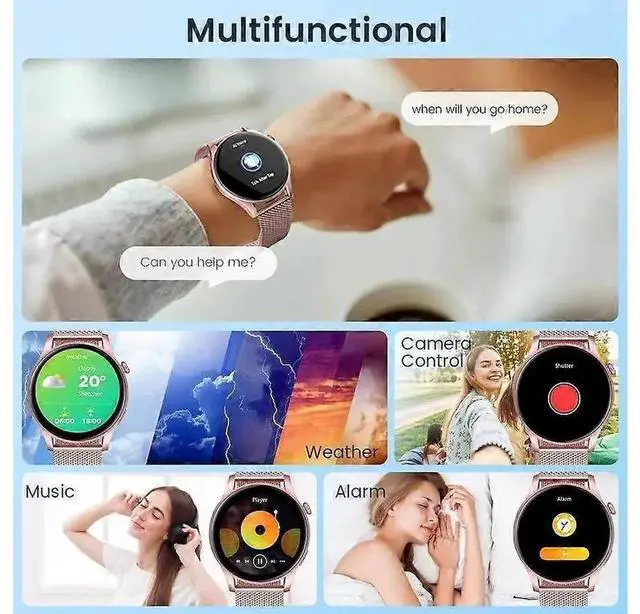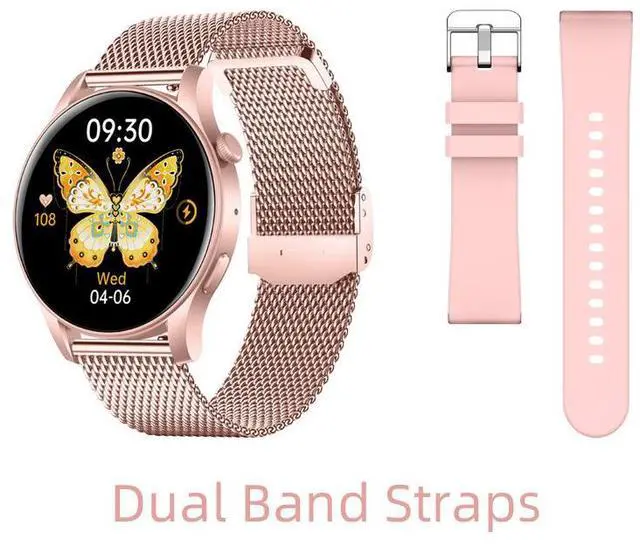 Elevate your fitness and style with this advanced women's smartwatch, featuring a vibrant 1.43 -inch AMOLED touchscreen for smooth visuals and customizable photo dials. Ideal for daily wear, workouts, and office use, it includes two straps (steel and silicone) for versatility.