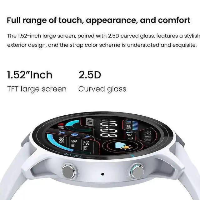 1.52 -inch 2.5D curved glass touchscreen with customizable watch faces for personal style