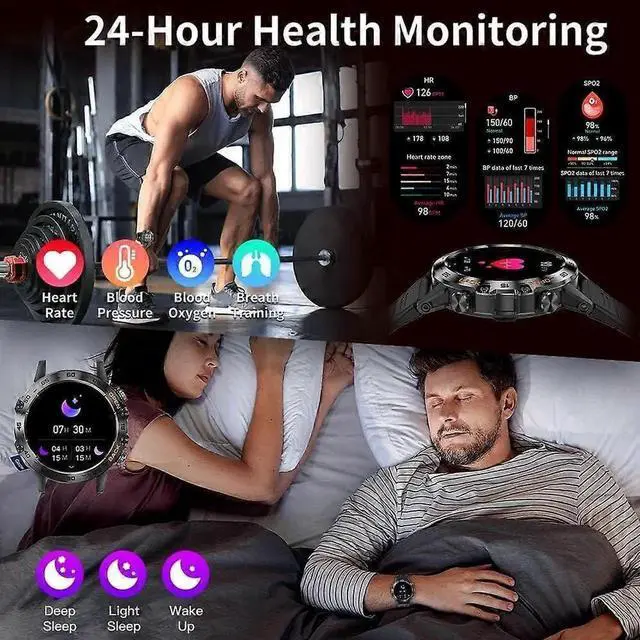- **Comprehensive Health Monitoring**: Continuous heart rate, blood oxygen (SpO2), blood pressure, and sleep tracking for wellness insights.