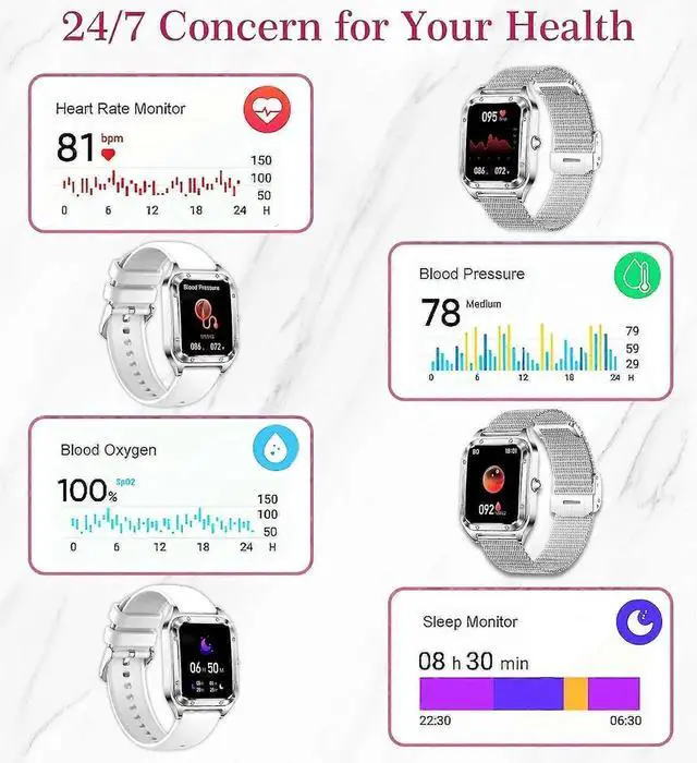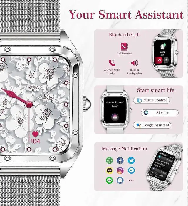 Stay connected and active with this versatile smartwatch for women, featuring a 1.6 -inch HD touchscreen and IP67 waterproof rating.