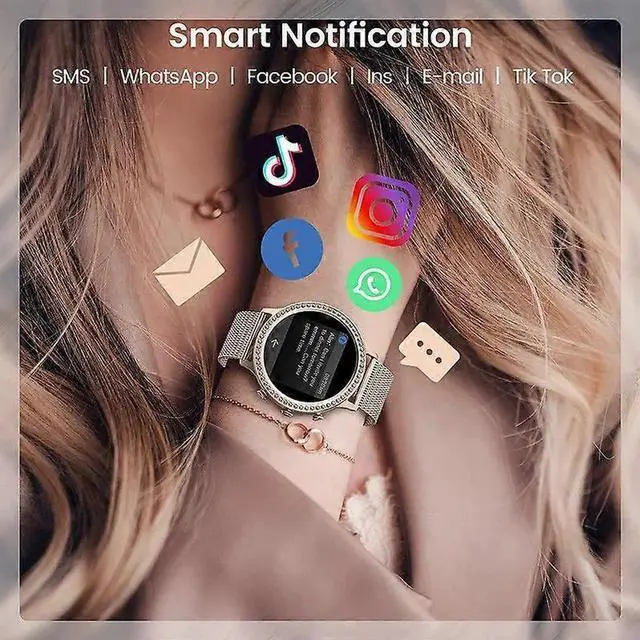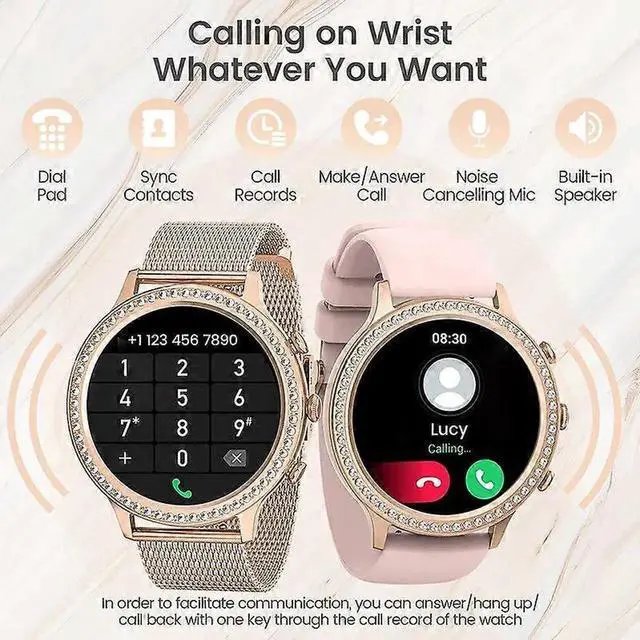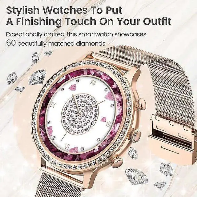 Elevate your style and wellness with this elegant smartwatch for women, featuring a 1.32 -inch HD display and bezel adorned with 60 diamonds.