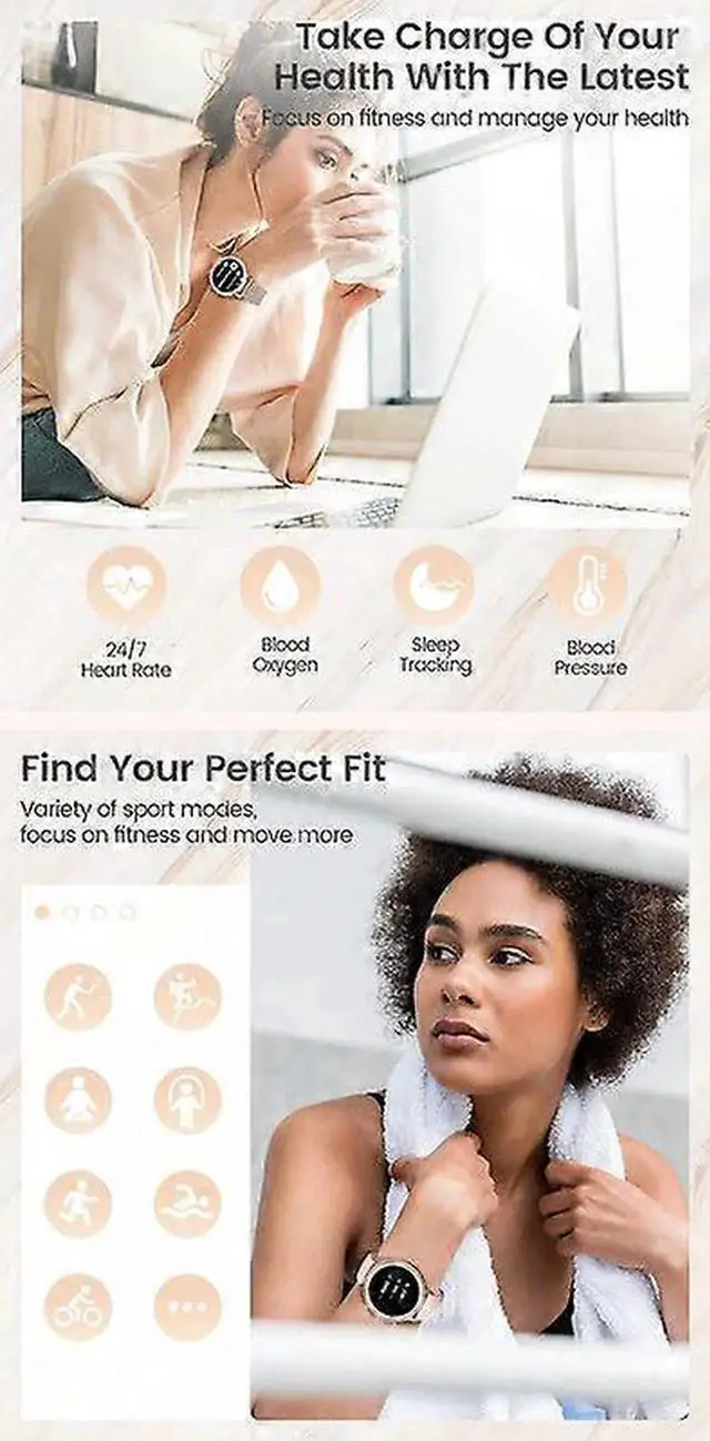 - 24/7 health monitoring: Track heart rate, blood oxygen, blood pressure, and sleep stages (deep, light, awake)