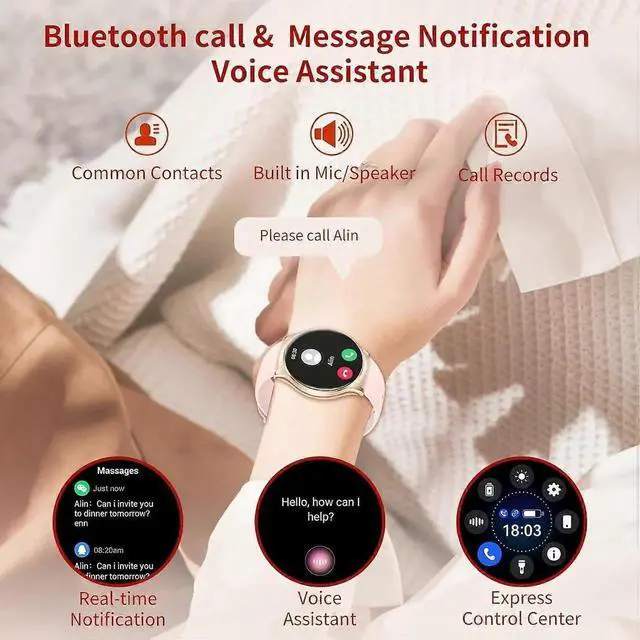 Elevate your fitness and style with this advanced women's smartwatch, featuring a vibrant 1.43 -inch AMOLED HD touch screen for crystal-clear visuals. Stay connected and healthy with seamless smartphone integration, all-day activity tracking, and versatile functionality.