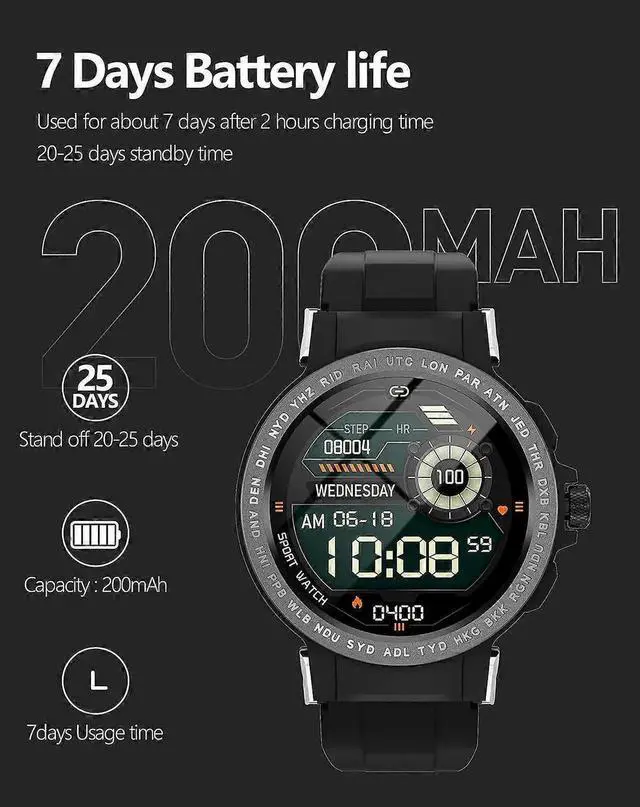 - 1.3 -inch ultra-clear touch screen with adjustable brightness and customizable watch faces