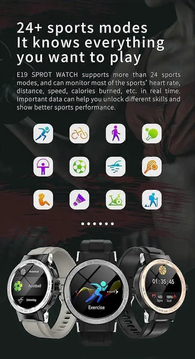 - 24 sports modes tracking steps, distance, calories, and heart rate all day