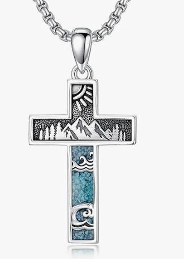 Cross Necklace for Unisex 925 Sterling Silver Turquoise Cross Pendant Necklace Religious Jewelry Gifts for Women Men