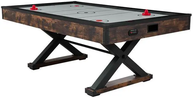 84" Air Hockey Table, Indoor Arcade Table Gaming Set with 2 Pushers, 2 Pucks, Electronic Scorer, X-shaped Legs & High-powered Blower, Air Powered Hockey Game Table for Family Game Room Office
