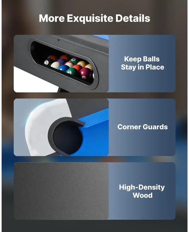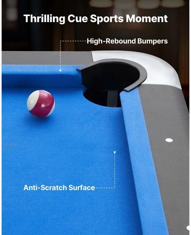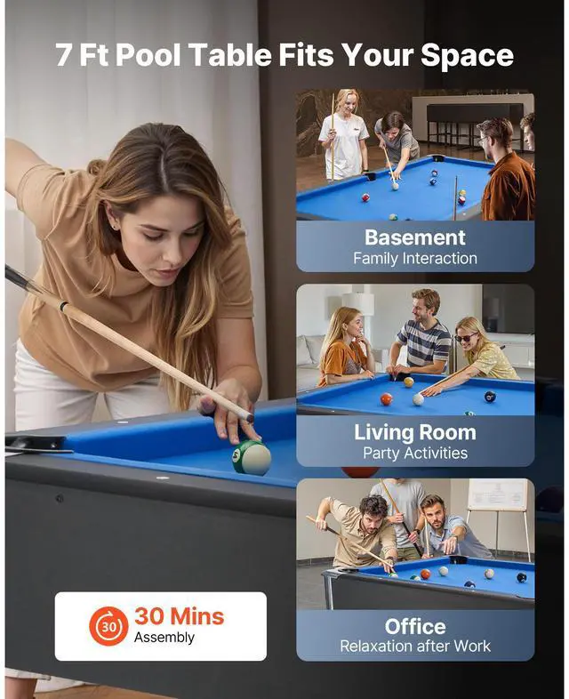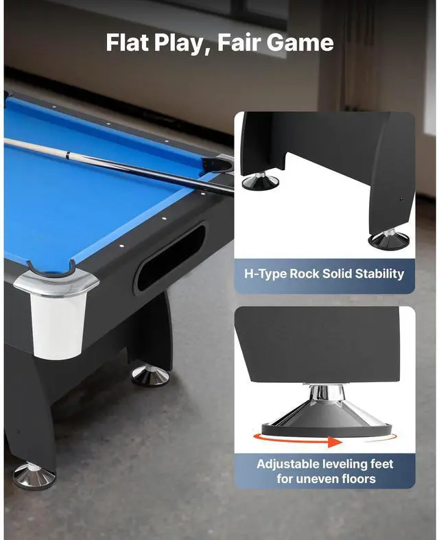 Pool Table, 7 ft Portable Billiards Tables, Adjustable Feet Stable Game Table, Entertainment Set Includes Ball, Cue, Rack, Chalk and Brush, Black with Bule Cloth, for Family Use, Recreation Room