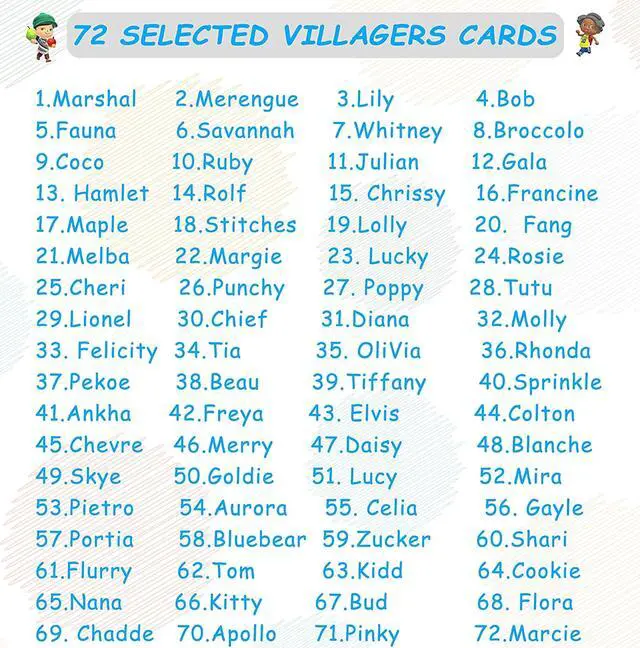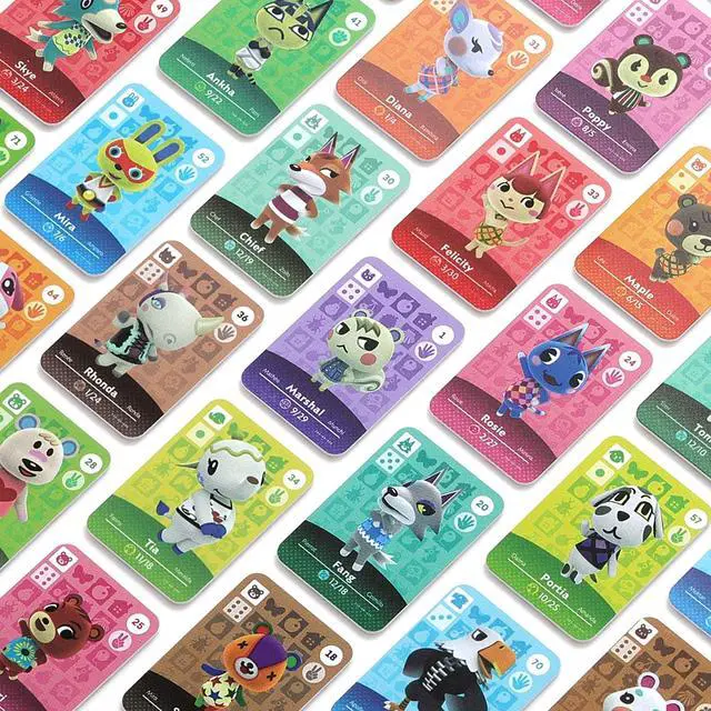 72pcs/pack Animal Crossing Series Customized Amiibo NFC TAG Cards These tag cards are able to be used on your Switch/Wii U. Tested and work perfect. NO Figure, NFC tag only. Works perfectly in Animal Crossing Series. These NFC tag cards are written with the data to assist game function. You can brush out the characters you want and invite to live in the village. Also you can take pic with some of the characters or invite them to visit and live in your village.