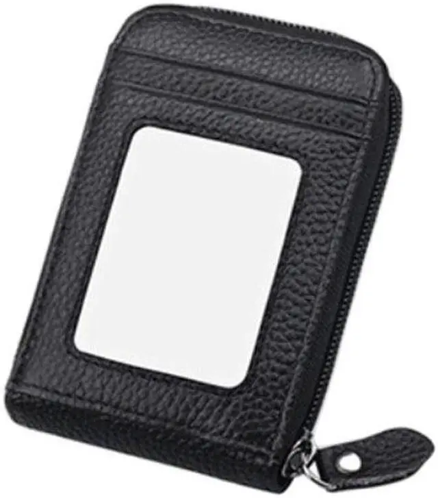 Card Wallet Genuine Leather Hold up to 26 cards in the 12-slot wallet Includes two external slots for quick access Store ID in the clear slot for easy viewing It is with zip closures, keeping your cards and cash secure Big capacity meets your daily use