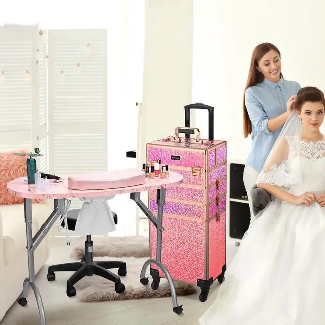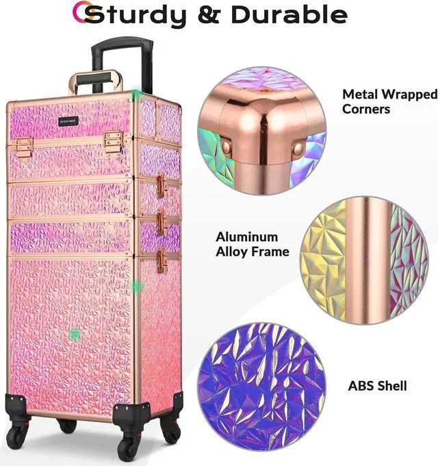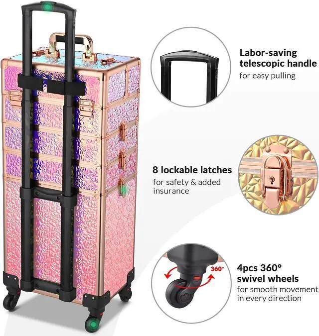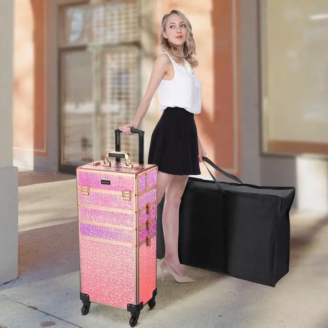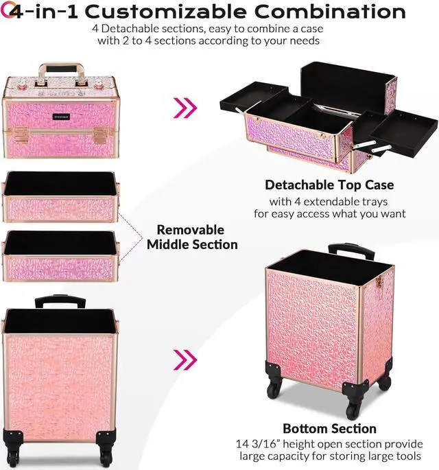 - 4-in-1 Customizable Structure - 4-in-1 Makeup Train Case features 4 sections to allow free combination, can be combined into 1 large train case or used as a 2 to 4-layered trolley; The 2nd and 3rd section for providing 2-layer space to store lipsticks, mascaras, palettes, etc., and the 4th section is a large space for large tools, hair dryers or irons