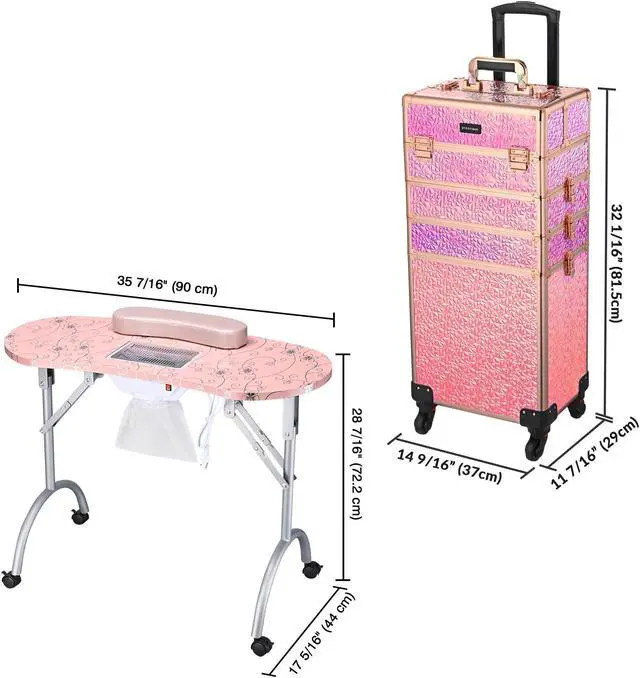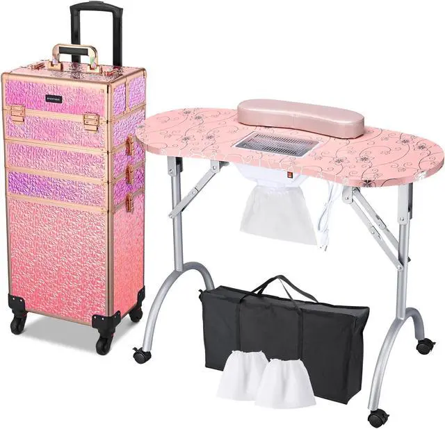 - Professional Nail Desk - Foldable Manicure Nail Table features built-in dust collector & wrist cushion, 4 pcs 360-degree swivel wheels with locks for easily moving to any places & locking to keep in fixed position; Ideal for nail art, beauty salon, Spa, professional manicurists, beauty gurus