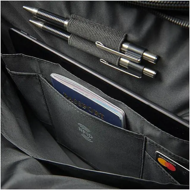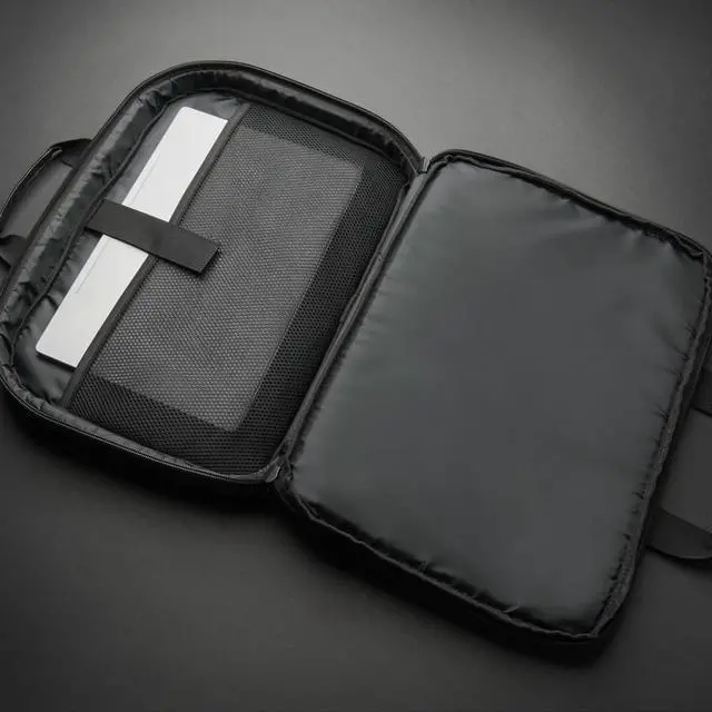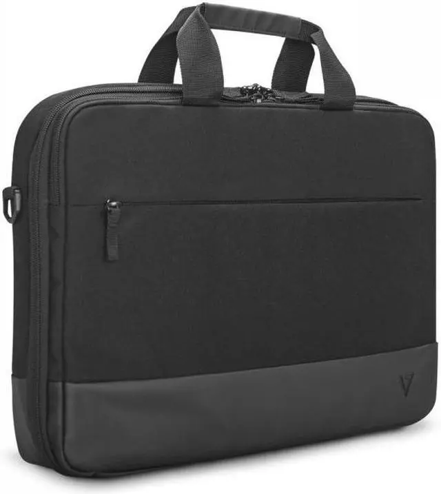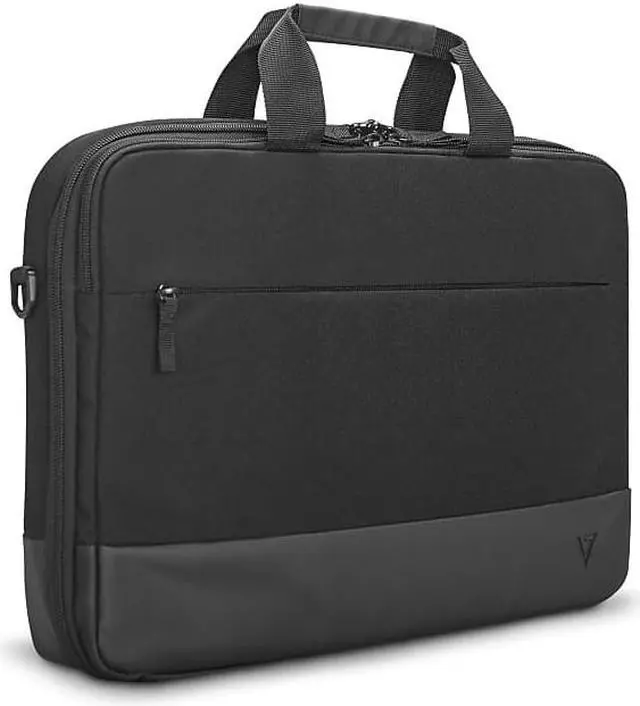 The 17" Eco-Friendly Professional Frontloading Laptop Case from V7 is sleek and durable. The case features a padded laptop compartment with a strap to keep your laptop secure. It has a soft, padded handle so it's comfortable to carry. The zippered outside compartment has ample room for your smartphone, and accessories. It also features a new RFID Pocket to protect your ID Cards and chip-based credit card information. The back of the bag has a pass-through for rolling luggage, making this case the perfect companion for business trips.