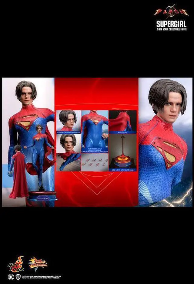 Skillfully crafted based on the appearance of Sasha Calle as Supergirl in the movie, the screen-accurate figure features a newly developed head sculpt with stunning likeness, sculpted hair and separate rolling eyeballs system. A newly designed body with accurate body proportion, and enhanced joint articulations allowing a greater range of movement to mimic her iconic poses easily. Her iconic costume is beautifully tailored in classic red and blue scheme, accompanied with a wired fabric cape to create dramatic flows. Also includes a LED lighted figure stand detailed with Supergirl logo for a little storytelling element.