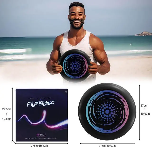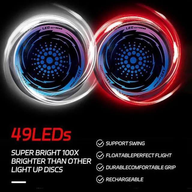 [49 SUPER BRIGHT LEDs] - Our LED Flying Disc is 100x brighter than any other light-up flying disc. It looks super cool, especially when you throw it outdoors at night, built-in high-efficiency LED light strip can provide bright and stable light, brighten up the sky with a vibrant colored light that makes each flying disc easy to see in the dark.