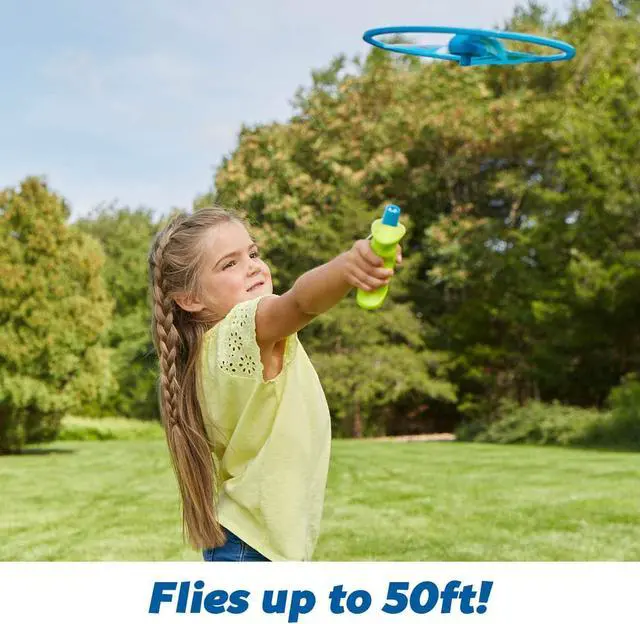 High Flying: The Rip Cord Flying disc can fly up to 50 feet. No batteries required! Totally kid powered.