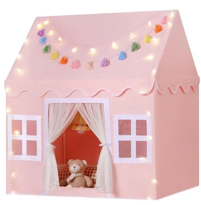 Senodeer Kids Play Tent Indoor: with Mat, Tassel Garland, Star Lights - Pink Girls Tent Playhouse Kids Toys for Boy Girl Birthday Gift for Kids
