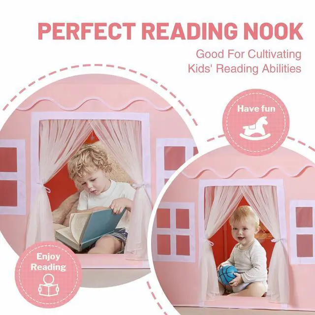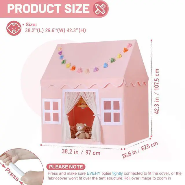 • EASY TO BUILD & CARRY ANYWHERE: Transform your kid's space into a magical wonderland in a snap! Our cute girls tent is easy to assemble, and you don't need any grown-up tools. Whether you want it inside or outside, the magic goes wherever you do