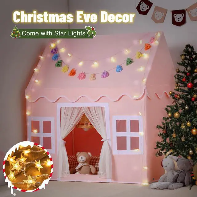 • PLAY TENT FOR PLAYTIME FUN: Open this kids tent indoor for girls up! There's the most adorable tent for kids room, magical star lights, and the prettiest tassel garlands. It's the coziest hideaway