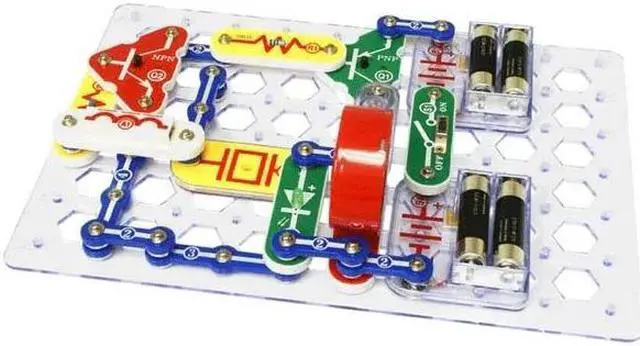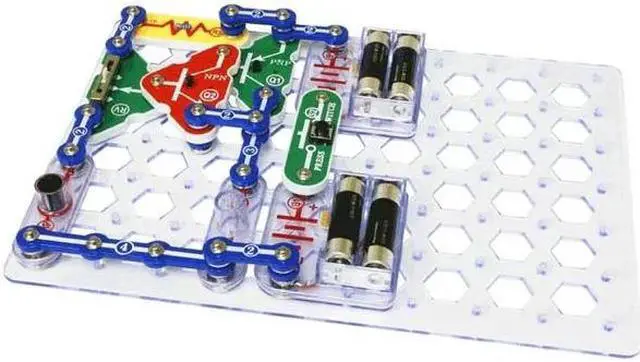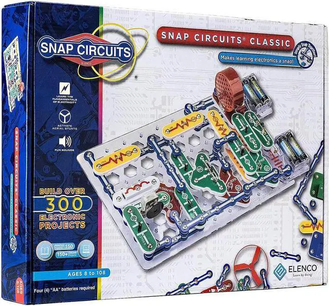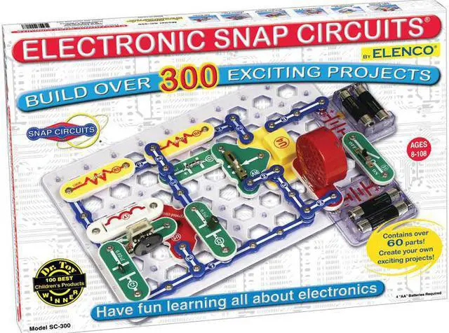 Snap Circuits® makes learning electronics easy and fun! Just follow the colorful pictures in our manual and build exciting projects such as AM radios, burglar alarms, doorbells, and much more! You can even play electronic games with your friends. All parts are mounted on plastic modules and snap together with ease. Enjoy hours of educational fun while learning about electronics. No tools required. Includes Projects 1-305 manuals (includes all of the SC100 projects and 200 new ones! )