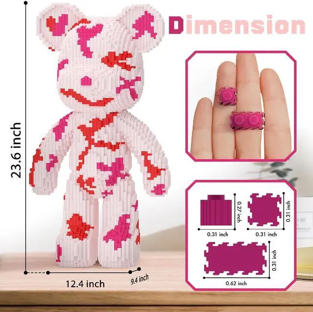 Unleash your creativity with this 8000 PCS Pink Bear Building Blocks Display Model, perfect for both kids aged 14+ and adults who enjoy intricate DIY projects. This set features mini building blocks, with some pieces measuring under 10mm, offering a fun and challenging experience that rivals traditional block sets.