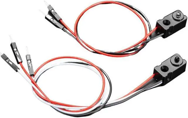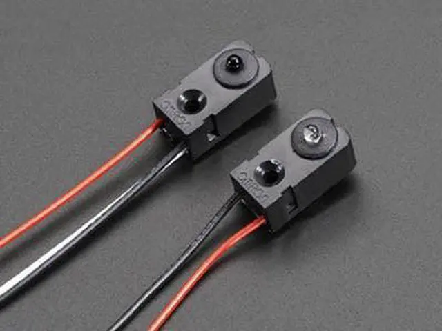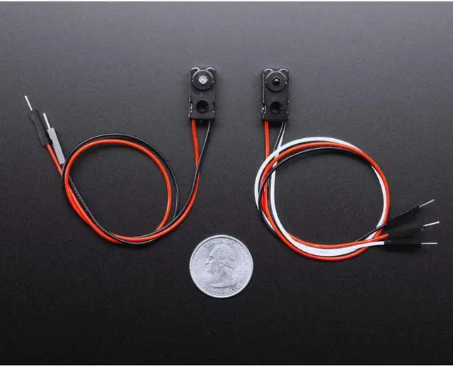 Infrared (IR) breakbeam sensors are a simple way to detect motion. They work by having an emitter side that sends out a beam of humaninvisible IR light then a receiver across the way which is sensitive to that same light. When something passes between the two and its not transparent to IR then the 'beam is broken' and the receiver will let you know. Compared to PIR sensors breakbeams are faster and allow better control of where you want to detect the motion. Compared to Sonar modules they're less expensive. However you do need both emitter and receiver on opposite sides of the area you want to monitor. This is the 3mm IR version. It works up to 25cm / 10. You can power it from 3.3V or 5V but 5V will get you better range and is what we suggest. The receiver is open collector transistor output which means that you do need a pull up resistor if you want to read a digital signal off the signal wire. Most microcontrollers have the ability to turn on a built in pull up resistor. If you do not connect a 10K resistor between the white wire of the receiver and the red wire. If you want to control a relay or LED or whatever it can sink up to 100mA to ground