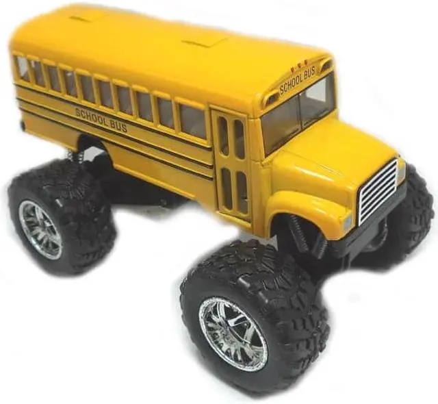 A2DBI 142 - BUS SCHOOL YELLOW 5 INCH WITH BIG WHEELS AND PULL BACK ACTION