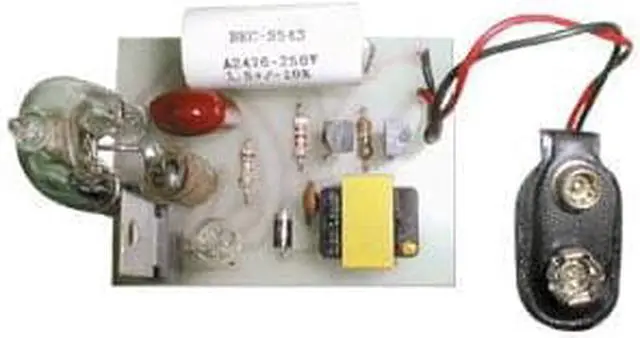 Compact strobe flasher produces brilliant flashes of white light from a horseshoe xenon strobe tube. Features newly revised circuit for brighter output and less current drain.