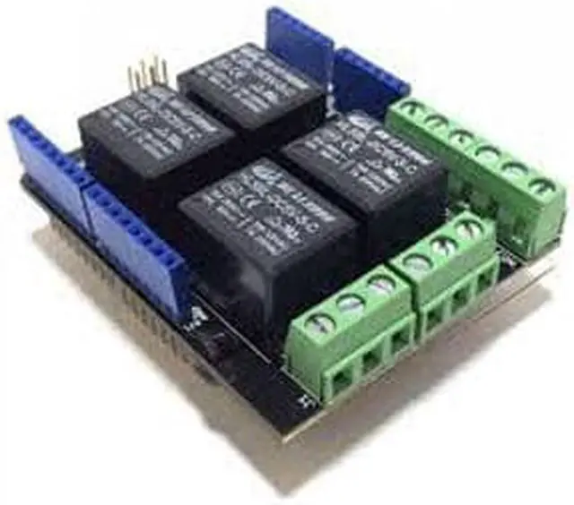 The Relay Shield provides four high quality relay that can control high current loads to Arduino / Seeeduino boards. It also provides NO (Normally Open) / NC (Normally Closed) interface. It could be a nice solution for controlling devices that could not be directly controlled by Arduino?s Digital I/Os. Standardized shield form factor enables smooth connection with Arduino and compatibles. The shield also has four LED indicators to show the on/off state of each relay.