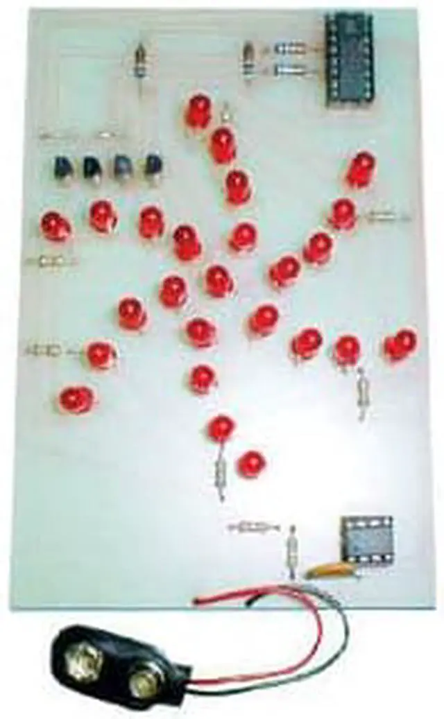 Produces an ?exploding star? visual effect using 25 LEDs and IC circuitry. The center LED lights first then the next group of LEDs light and then another set lights until the outer edge of the star lights up. The process then reverses itself. Great attention getter for game rooms discos etc.