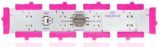 The sequencer allows you to connect up to eight outputs and control them in sequential patterns. Sequences that would take as long as 4 days to program without littleBits will only take you seconds! Automatically cycle through the entire sequence Control the speed of the sequence using dimmers or sensors Run the sequence four ways: forwards backwards pendulum or random Swap automation for full control and step through each part of the sequence using a button sound trigger or any other high signal input