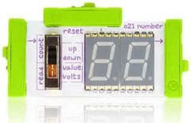 The number module displays information about the signal it?s receiving from your other modules. It features a twodigit sevensegment LED display. In the ?read? mode the module displays information about the signal it?s receiving. In the ?count? mode the module counts up or down with each trigger. The counter can be reset by receiving a trigger at the reset bitSnap.?