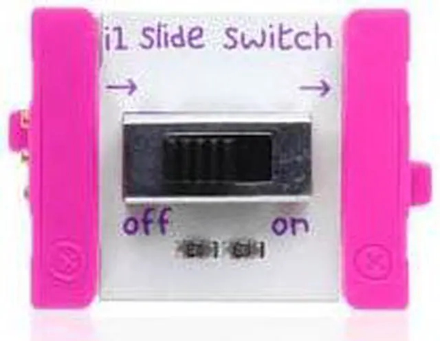 The slide switch is a small and convenient way to turn your creations on and off. It uses a sturdy plastic lever to switch back and forth. Try it with any of your favorite Bits like the DC motor or bright LED!